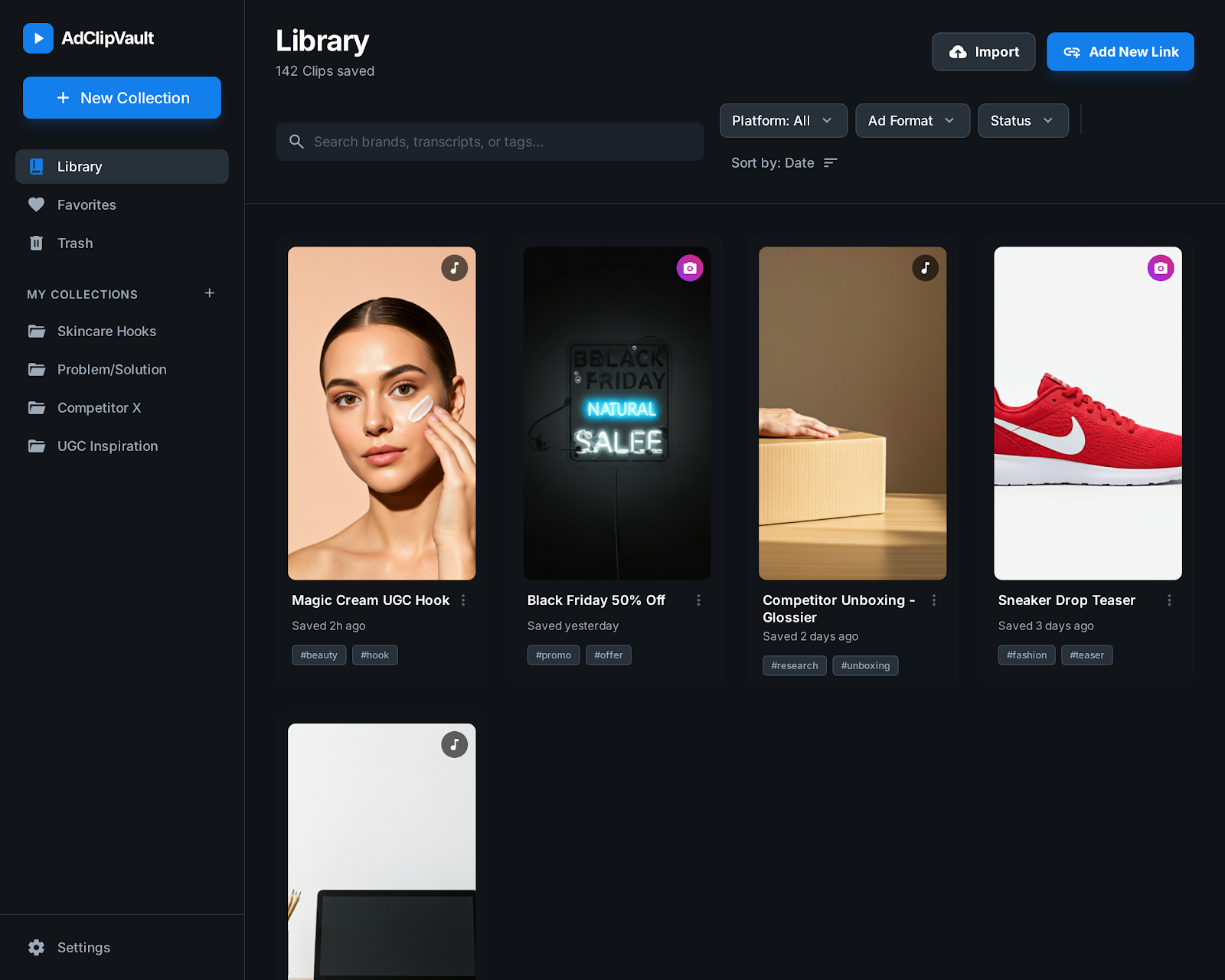 Say goodbye to messy screenshots and unsearchable bookmarks. AdClipVault turns ad research into a repeatable workflow.